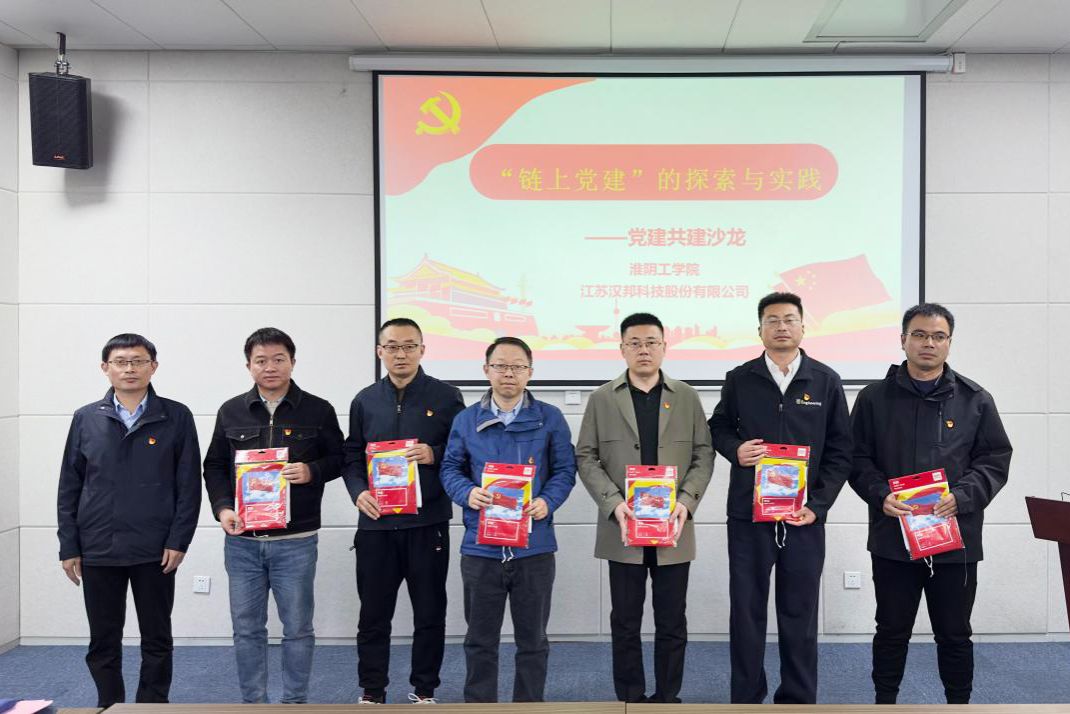11月12日,我校在江苏汉邦科技股份有限公司组织开展以“链上党建红赋能强国行”为主题的党建共建沙龙活动。校党委副书记秦家沛,党委组织部及相关二级党组织负责人,产业链党支部书记,全国、省、校级“双带头人”教师党支部书记“强国行”专项行动团队成员共20余人参加活动。化学工程学院党委书记张常新主持活动。