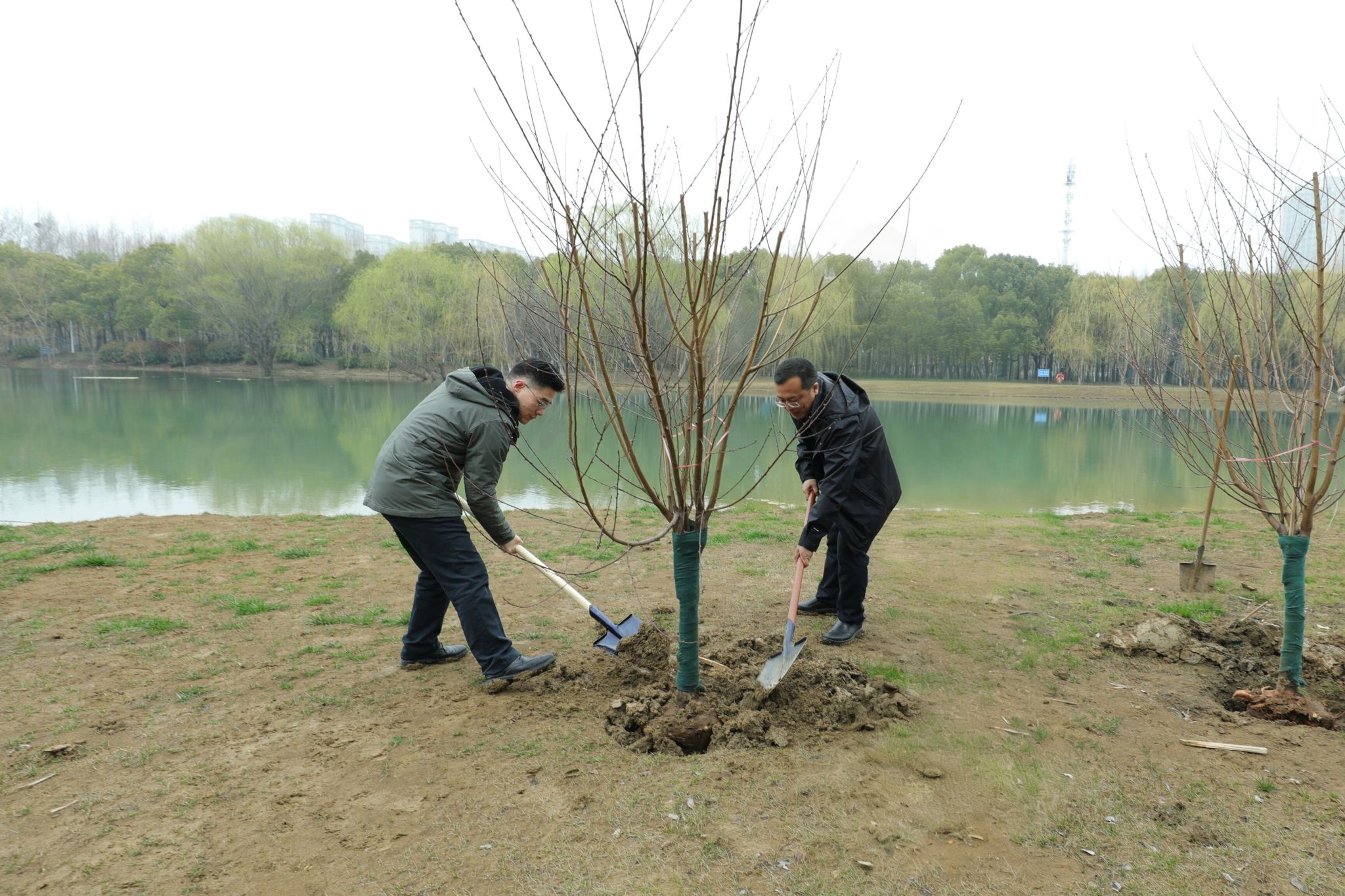 3月18日,为推进校园生态环境建设,我校后勤基建处在枚乘路校区南园桃花岛组织开展义务植树活动。副校长包旭、后勤基建处工作人员和部分学生志愿者参加活动。