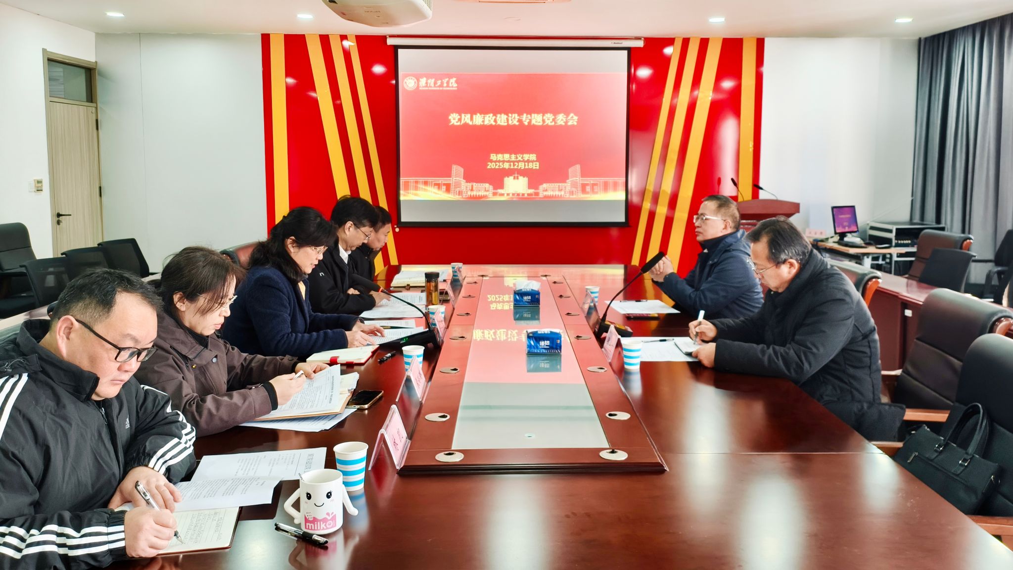 12月18日上午,马克思主义学院召开年度党风廉政建设专题党委会。校党委书记常绿出席会议并讲话,马克思主义学院党委书记翟明女主持会议。