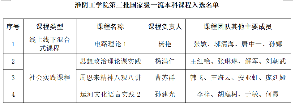 近日,教育部印发《关于公布第三批国家级一流本科课程认定结果的通知》(教高函〔2025〕9号),我校《电路理论1》等4门课程入选,其中线上线下混合式课程1门、社会实践课程3门。截至目前,我校共有国家级一流本科课程7门,省级一流本科课程28门,认定校级一流本科课程157门。