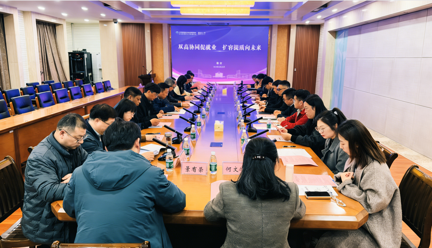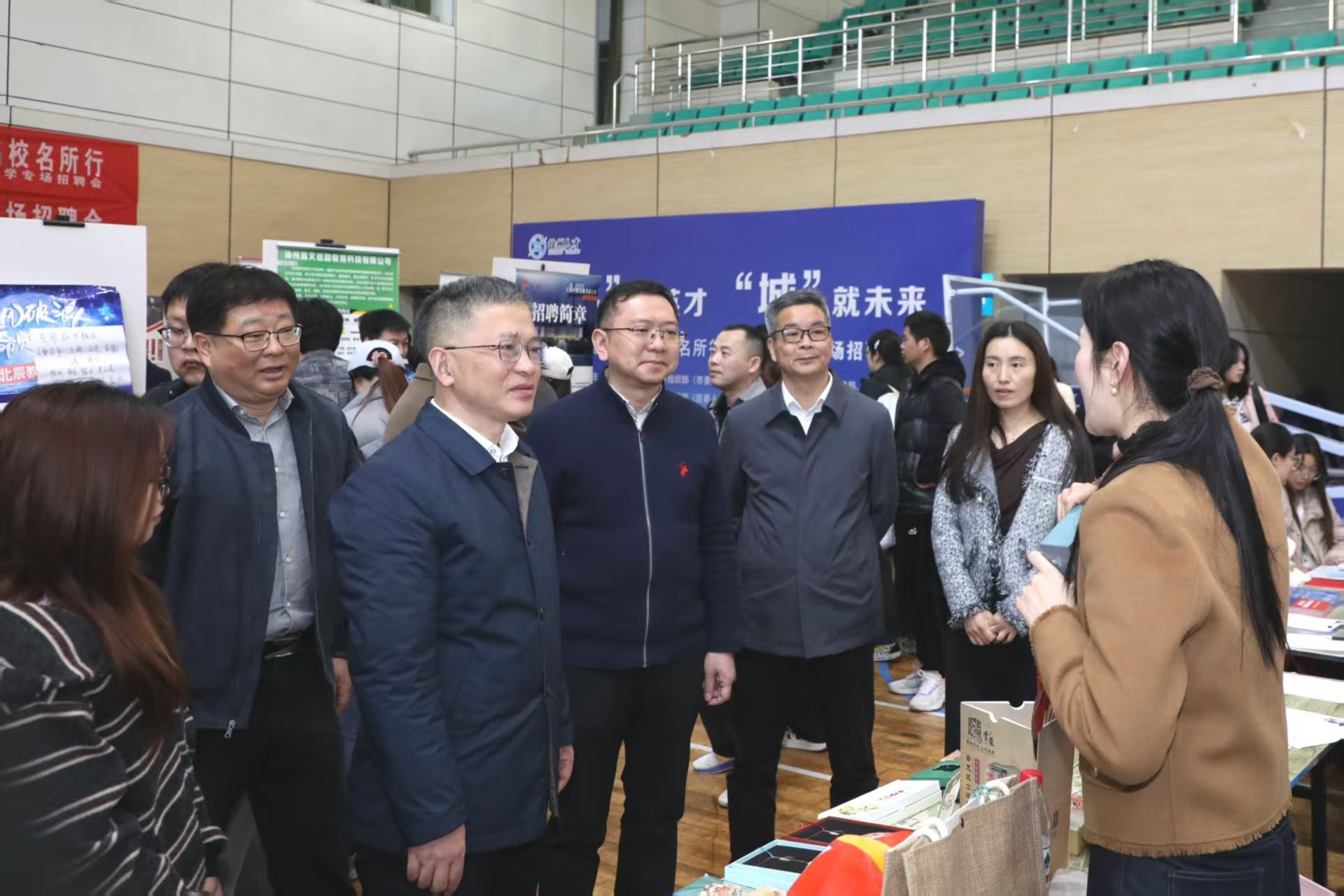 招聘会期间,举办了“双高协同促就业,扩容提质向未来”专场联合座谈。秦家沛、蔡亮以及淮安市人社局、淮安市经济开发区科技镇长团、东南大学、中国药科大学、南京林业大学、江苏大学、常州大学等单位的负责人一同走访部分淮安本地企业,调研企业人才需求,并与今世缘酒业、正大清江制药等用人单位招聘负责人进行面对面交流。