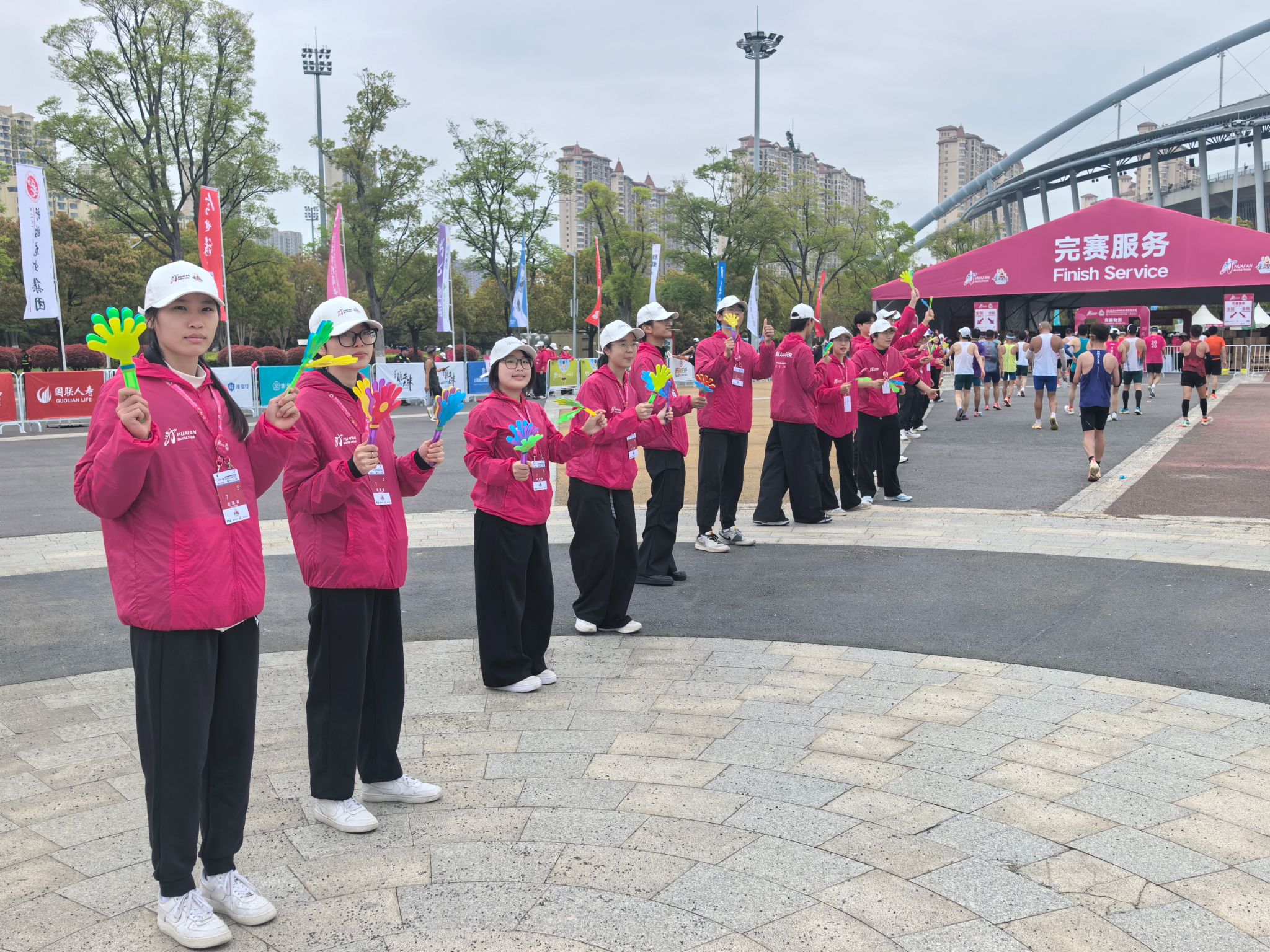为服务好淮马赛事,学校领导多次召开专题会议研究部署并到校园赛道指导筹备工作。学校有关部门通力协作,全面做好校园安全隐患排查、志愿者培训、文艺节目排练、氛围营造等工作。比赛当天,学校派出近千名学生志愿者,分布在补给站、引导岗和医疗辅助点等关键位置,用细致的服务、温暖的笑容为选手提供饮水补给、路线指引、秩序维护及应急救助等服务,成为赛事保障中不可或缺的力量。