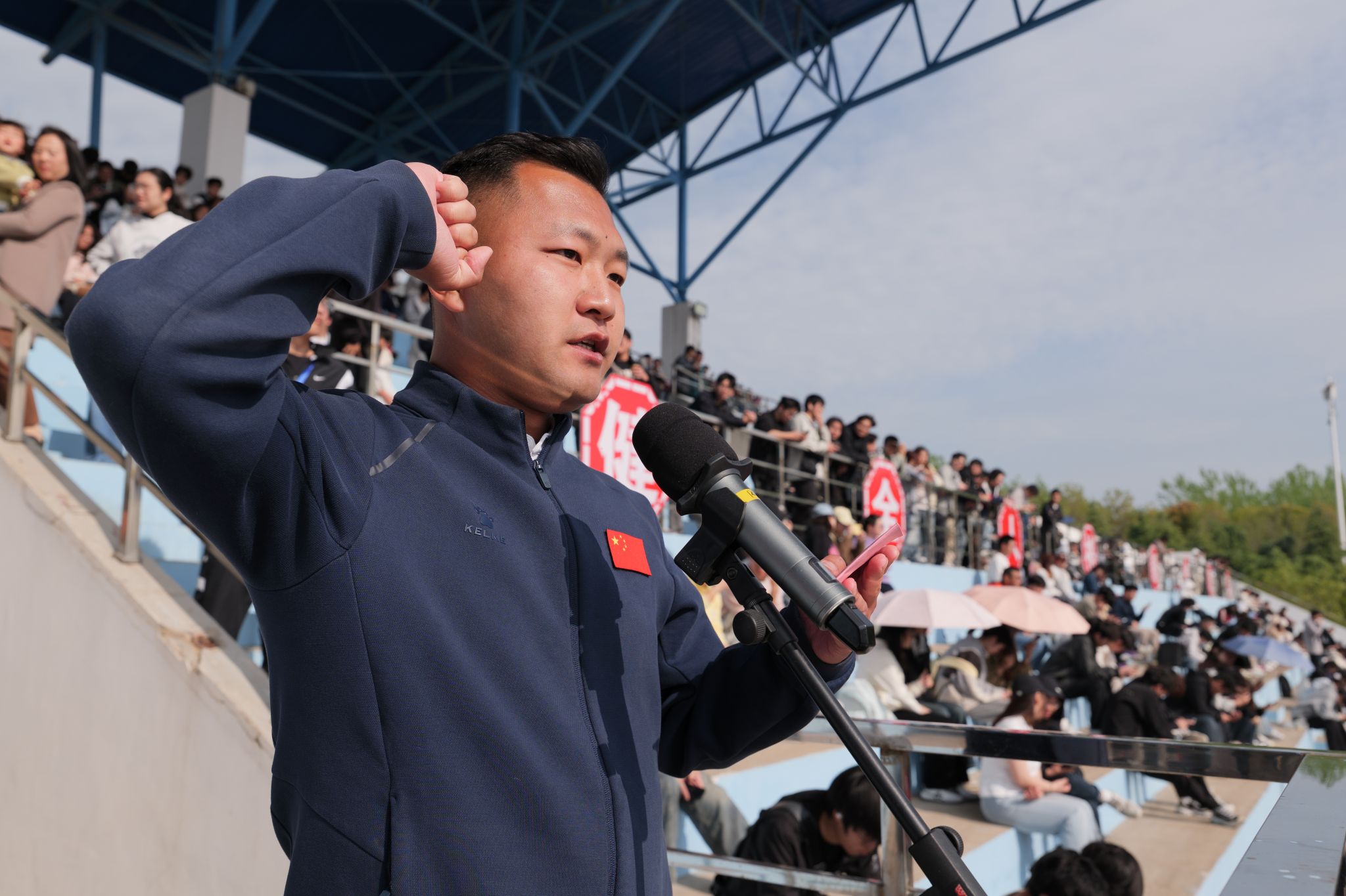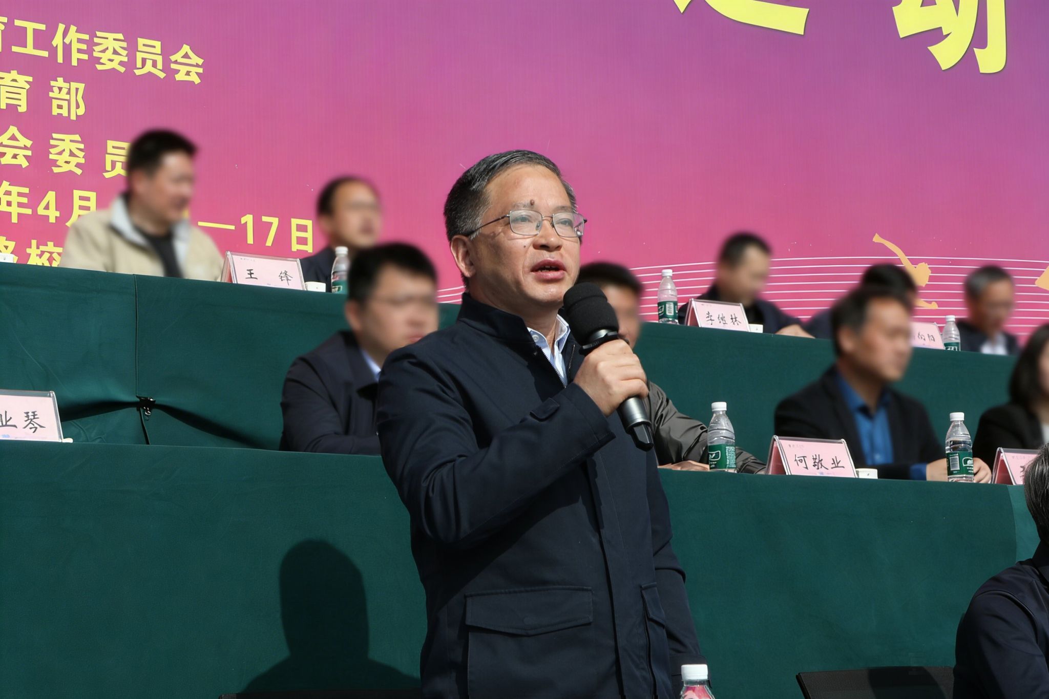 郑锋指出,本次运动会是学校更名淮安大学后的第一届运动会,是学校体育事业发展史上的里程碑,也是全体淮大人精神风貌的集中展示。“第一届”意味着新的起点,标志着学校体育工作翻开了崭新的一页;“第一届”意味着新的气象,展现的是学校开放包容、昂扬向上的大学气质;“第一届”意味着新的使命,开启了学校培养全面发展时代新人的新篇章。他强调,体育能强健体魄,同学们要走下网络、走出宿舍、走向操场,让体育锻炼成为终身习惯;体育能磨砺意志,体育教会我们的不仅是赢,更是如何体面地输、如何从跌倒中站起、如何在极限中突破自我,这正是同学们走向社会后最宝贵的精神财富;体育能健全人格,同学们要在集体项目中学会协作,在规则约束下学会尊重,在公平竞争中学会坦荡。希望大家以本届运动会为新的起点,让体育锻炼成为日常习惯,让竞技赛场成为成长课堂,在运动中强健体魄、乐享青春,在比拼中磨砺意志、涵养品格,共同绘就淮安大学高质量发展的崭新篇章。