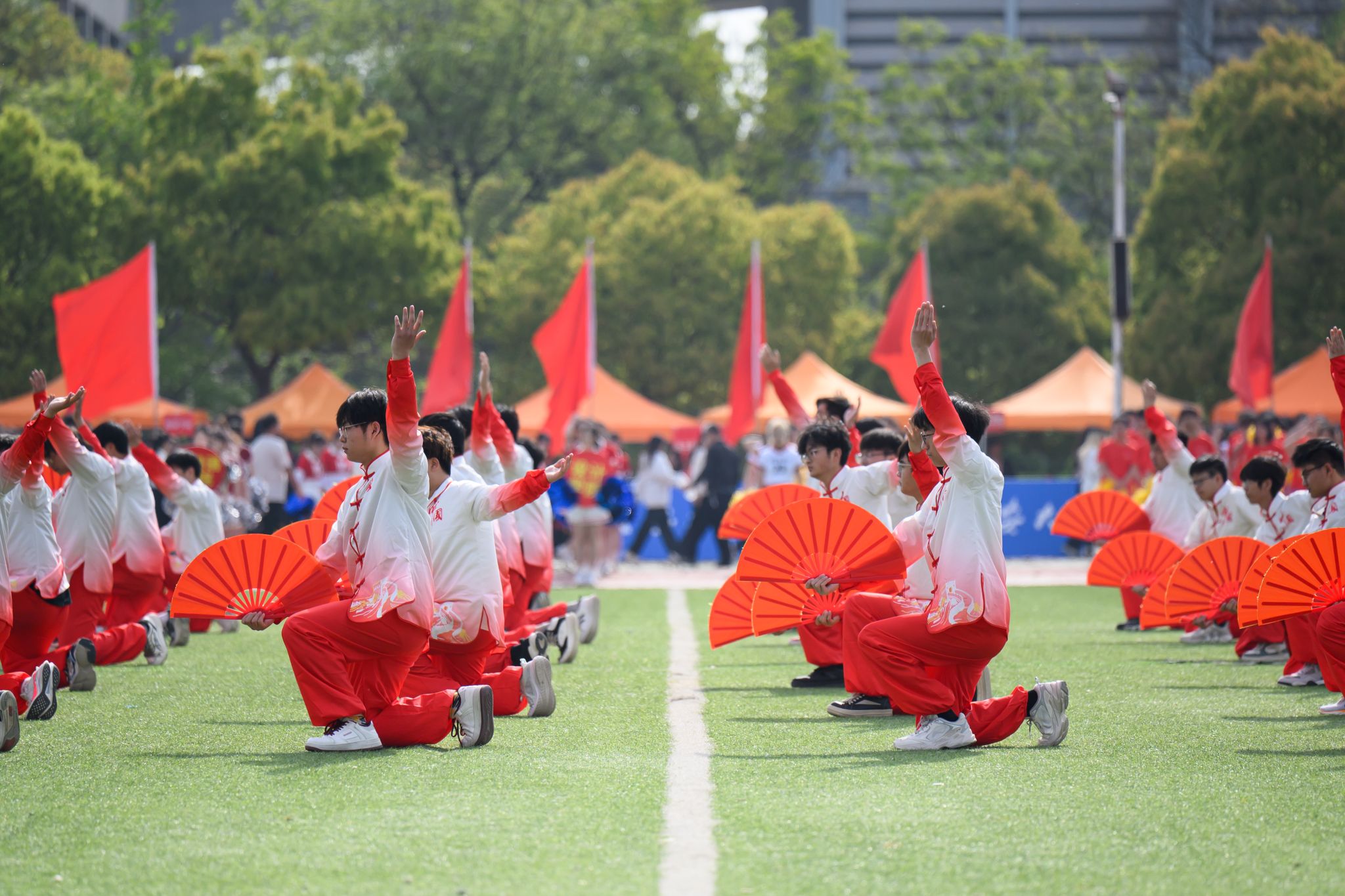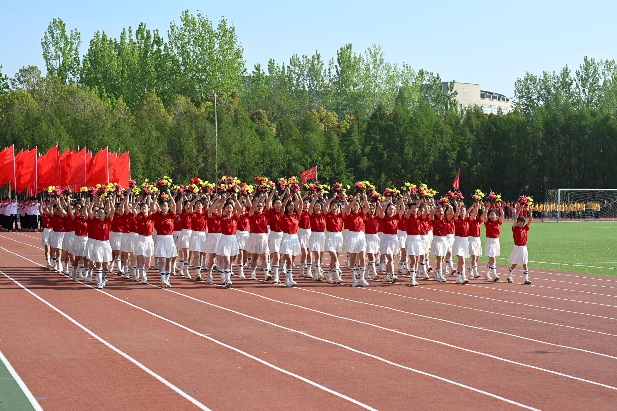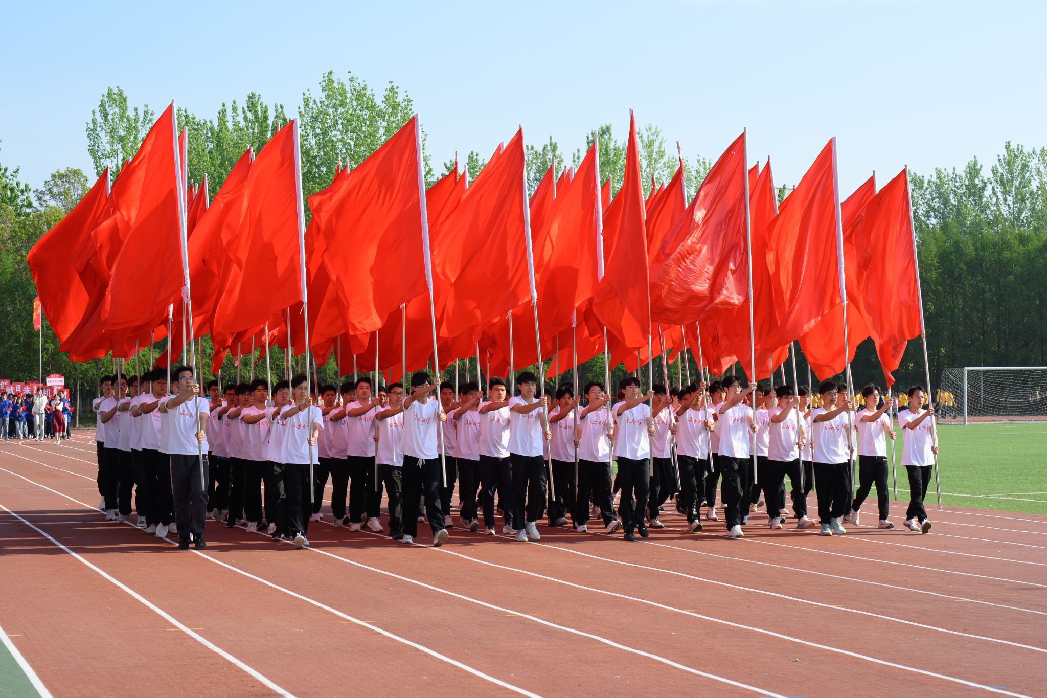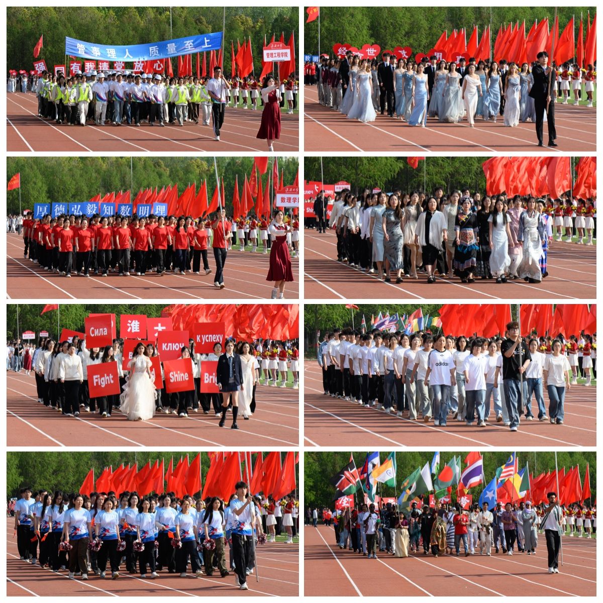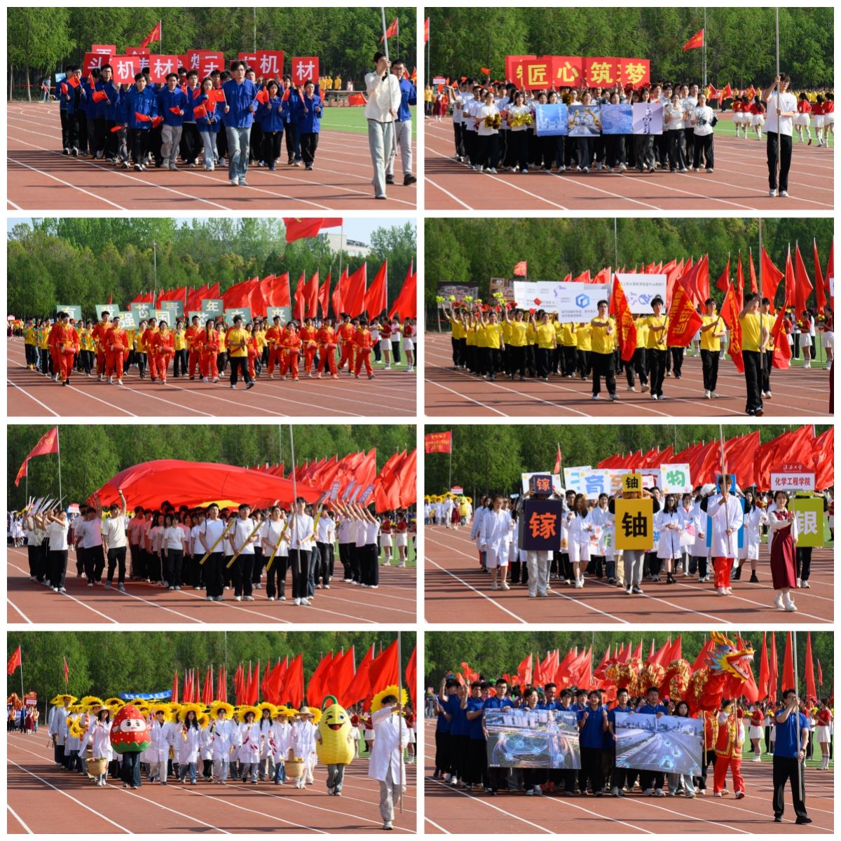 伴随着《运动员进行曲》的激昂旋律,在国旗方阵的引领下,各二级学院学生方阵和教职工方阵迈着整齐有力的步伐,精神饱满、意气风发地依次入场。各二级学院将学科优势、专业特色与时代精神融入入场式,创意十足、精彩纷呈的运动员方阵逐一亮相,充分展现师生们昂扬向上的风貌与活力。