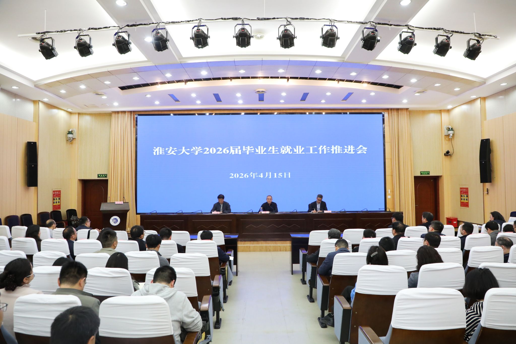 4月15日下午,我校在翔宇楼二楼报告厅召开2026届毕业生就业工作推进会。校长郑锋、校党委副书记秦家沛出席会议。苏州大学纳米科学技术学院党委书记靳葛应邀作辅导报告。招生就业处处长孙劲松主持会议。