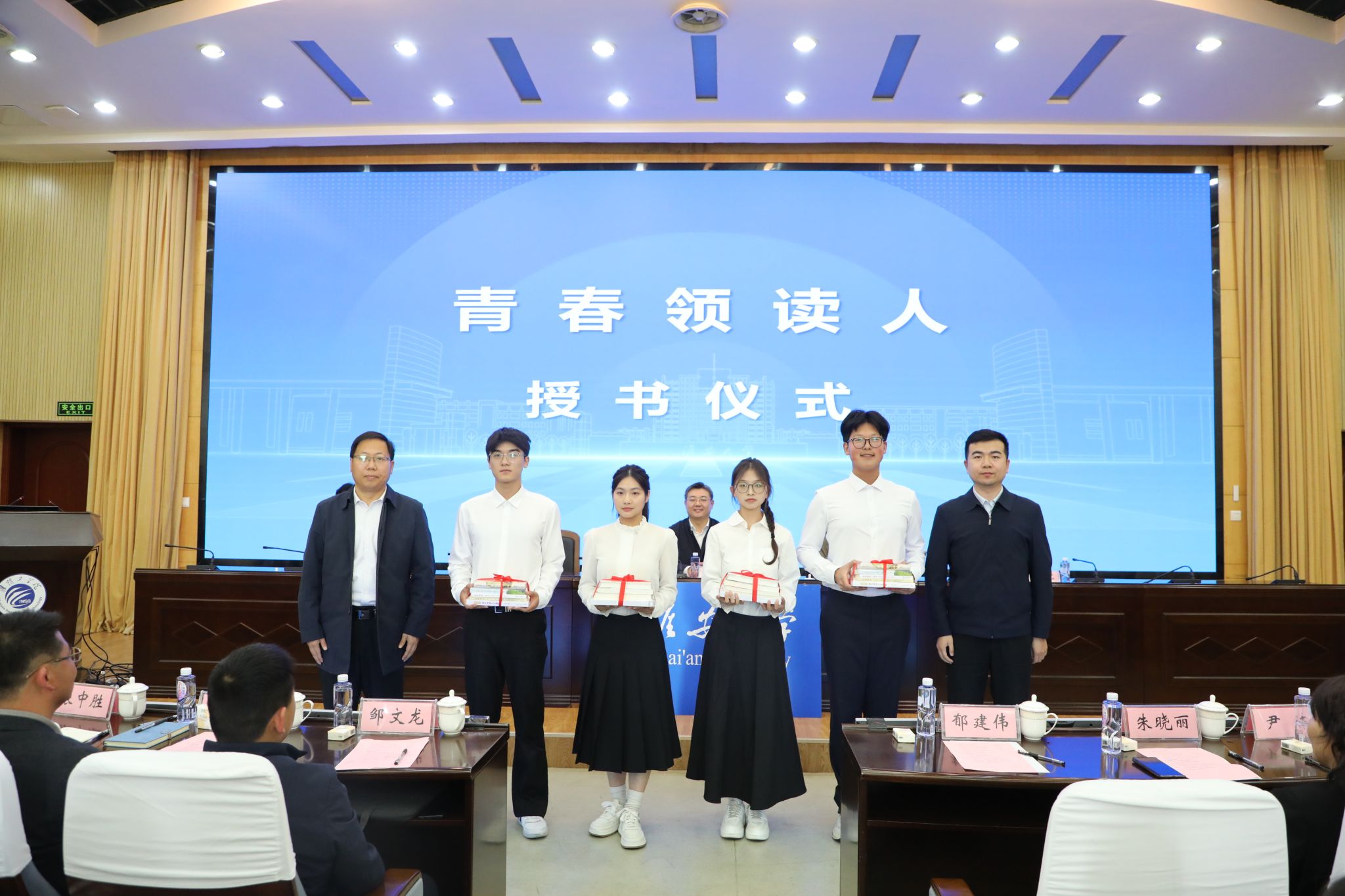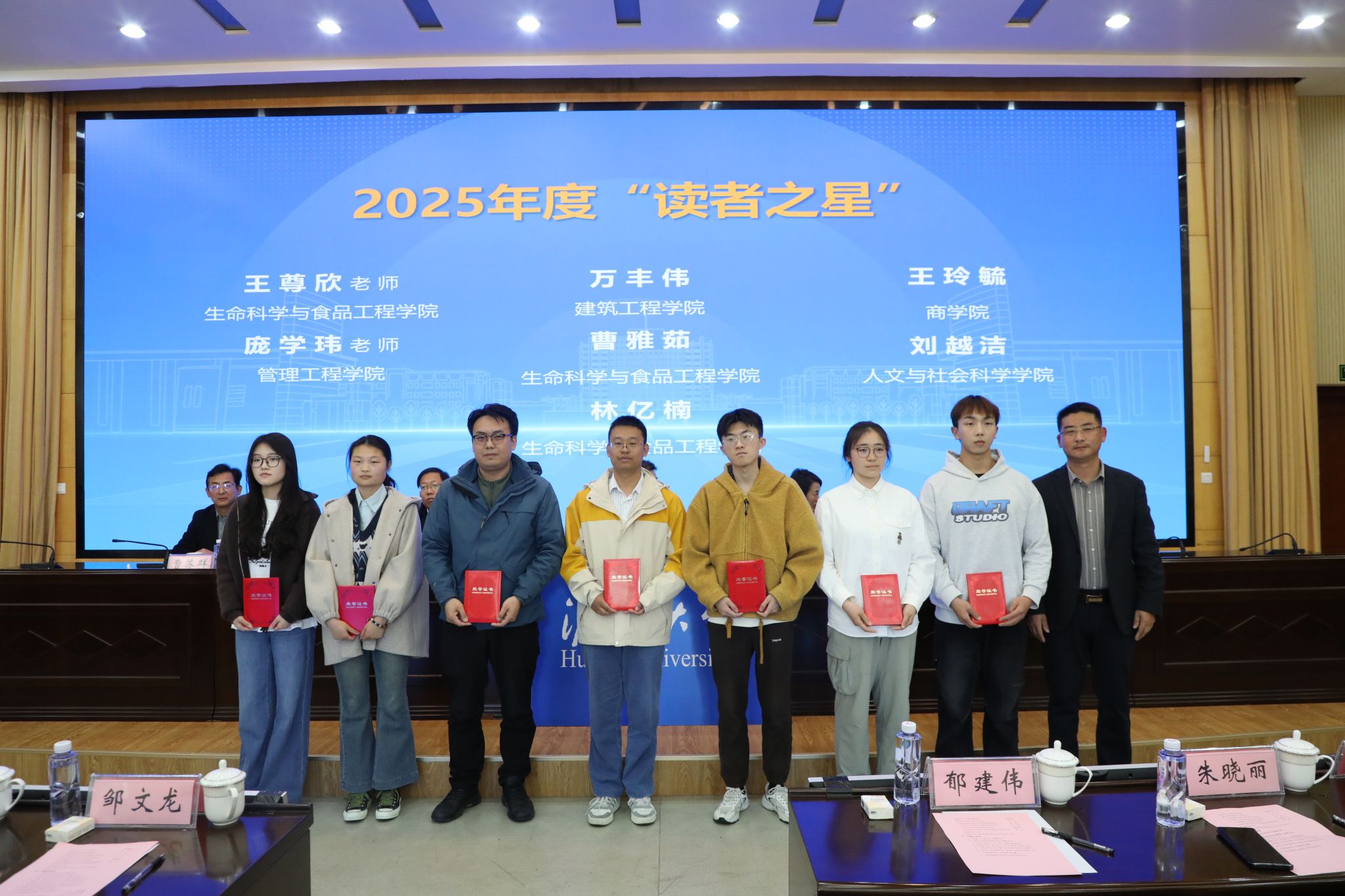 开幕式上,学校对2025年度“读者之星”、江苏大学生读书文化节获奖师生代表进行表彰。校园青春领读人发出青春阅读倡议,激励青年学子积极阅读、助力全民阅读。刘双喜、朱轶亭向青春领读人代表赠授图书。