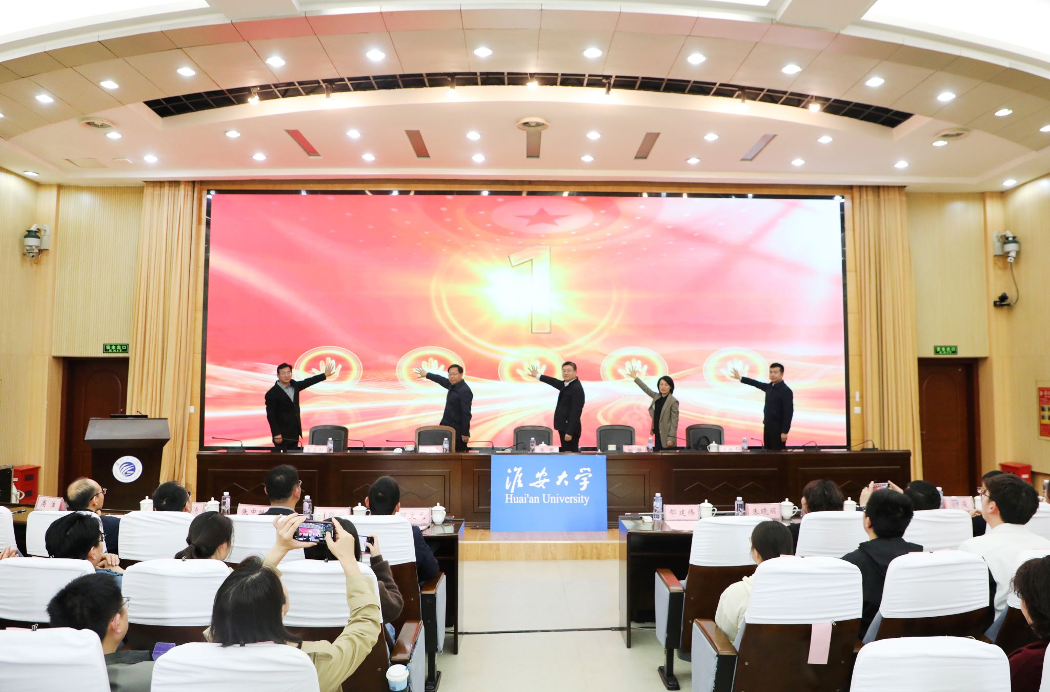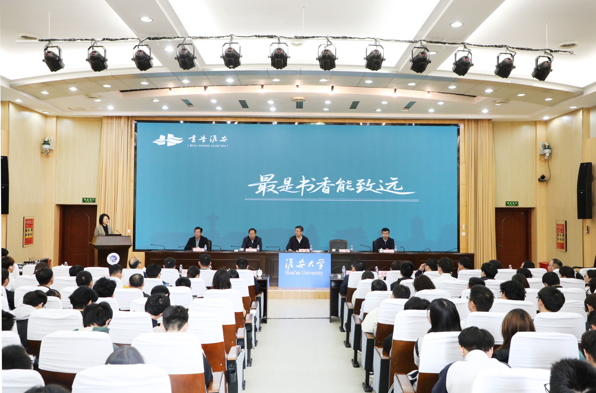 在全体与会人员共同见证下,与会领导共同启动淮安大学首届(第27届“知不足”)读书节。